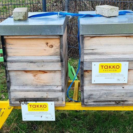 Bei der Frühjahrskontrolle unserer vier Bienenvölker sind drei wohlauf und haben genug Futter. Zwei von ihnen haben bereits ein wenig verdeckelte Brut. Ein Bienenvolk bereitet uns jedoch Sorgen. Der Varroabefall ist sehr gering, die Winterbehandlung hat gewirkt. Jetzt erhalten alle 1 kg Proteinfutter und ein bisschen Kraftfutter, damit sie gut ins Frühjahr starten. Die Takko-Bienen haben neue Namensschilder bekommen.