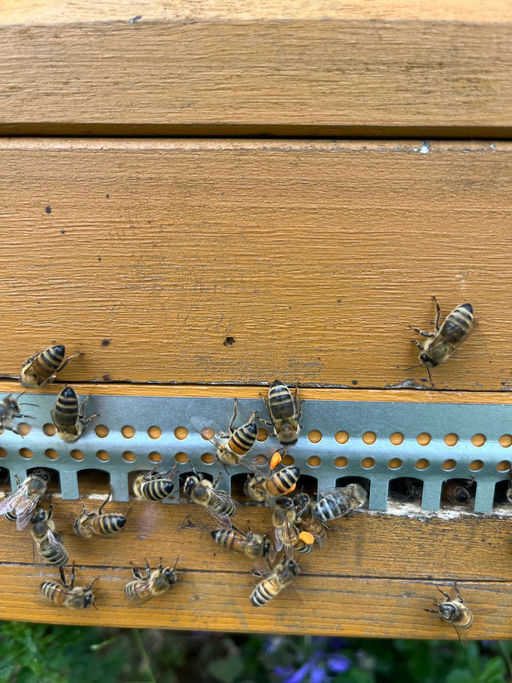 Bei unseren QVC-Bienen herrscht Hochbetrieb – unzählige Sammlerinnen kehren mit prall gefüllten Pollenhöschen zurück und versorgen das Volk mit frischem Pollen und Nektar. 🍯🌼 Ein echtes Summen für die Biodiversität – und vielleicht auch bald für den nächsten Honig! Damit keine Langeweile aufkommt und genug Platz für das süße Gold bleibt, haben wir kurzerhand neue Honigräume aufgesetzt.