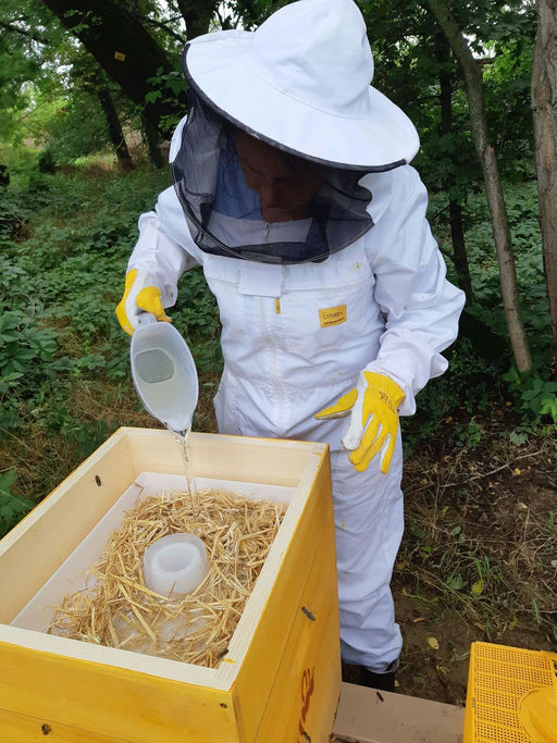 Die Bienen benötigen über den Winter rund 15 kg Futter. Es ist Aufgabe – und aus meiner Sicht Pflicht – des Imkers oder der Imkerin, dafür zu sorgen, dass genügend Futter im Stock ist. Deswegen heißt es: Füttern und auf das Stockgewicht achten. Dabei muss man aber vorsichtig vorgehen, denn sonst lässt man der Königin nicht genügend Platz für die Eiablage, weshalb nicht genügend "Winterbienen" schlüpfen könnten. Dadurch wäre das Volk über den Winter "unterversorgt" und könnte allein deswegen verloren gehen.
