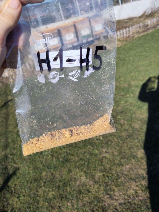 Um genau das auszuschließen, werden alle Völker beprobt. Hierzu werden die Wachsreste, welche die Bienen durch das Öffnen der Deckel der Futterzellen fallen lassen, von mir gesammelt. Diese Wachsreste werden von bis zu fünf Völkern – immer nur an einem Standort – gesammelt und anschließend in ein auf Imkerei spezialisiertes Labor geschickt.