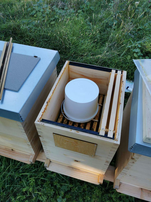 Im Oktober ist es noch warm, und die Bienen können weiterhin ausfliegen und Pollen von spätblühenden Pflanzen sammeln. Wir haben diesen Monat auch genutzt, um die Bienen mit Zuckersirup zu füttern. Die Bienen trocknen den Sirup auf unter 20 % Wassergehalt, lagern ihn in den Waben ein und verschließen die Zellen mit einem Wachsdeckel. Im kalten Winter werden die Zellen nach und nach geöffnet, um die Energie in Form von Zucker zum Heizen und als Nahrung zu verwenden. Der Imker muss die richtige Futtermenge im Gefühl haben, abhängig von Volksgröße und Beutengröße. Bei zu wenig Futter kann das Volk verhungern, bei zu viel wird der Platz für die Bienen in den Waben zu eng. Im November machen wir noch einmal eine Kontrollwägung, und dann kehrt bei den Bienen Ruhe ein.