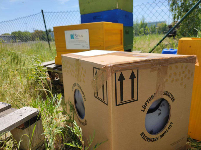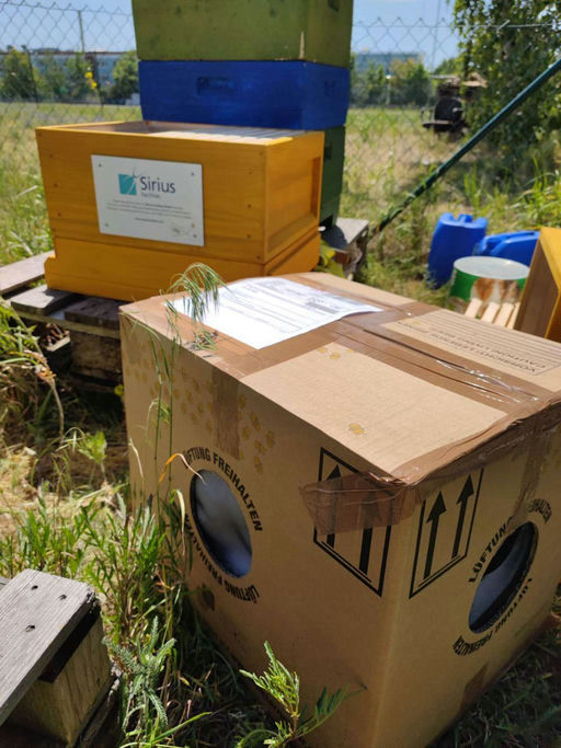 Ich war heute schon ein bisschen angespannt. Viele Fragen haben mich nicht in Ruhe gelassen: Wie werden die lebenden Bienen überhaupt angeliefert? Wie viele von ihnen überleben die Reise? Werden sie nach der Reise sauer, verdursten oder verhungern? Wie fühlt sich die Königin? Und dann kamen sie. Ich bereitete etwas Flüssigfutter vor und machte mich auf den Weg zu dem Stand mit der summenden Kiste. Dort öffnete ich den Karton vorsichtig, als alles vorbereitet war. Es waren sechs Rähmchen mit Brut, Nektar und Bienen. Sie kamen ohne Königin, haben aber bereits begonnen, selbst zwei königliche Zellen zu bauen. In etwa 12 bis 14 Tagen wird es eine Prinzessin geben. Bis sie befruchtet wird und anfängt, Eier zu legen, lasse ich das Bienenvolk völlig in Ruhe. Willkommen zu Hause, ihr kleinen Reisenden.