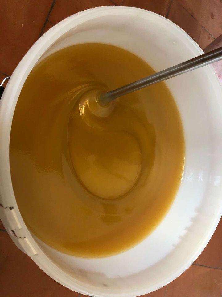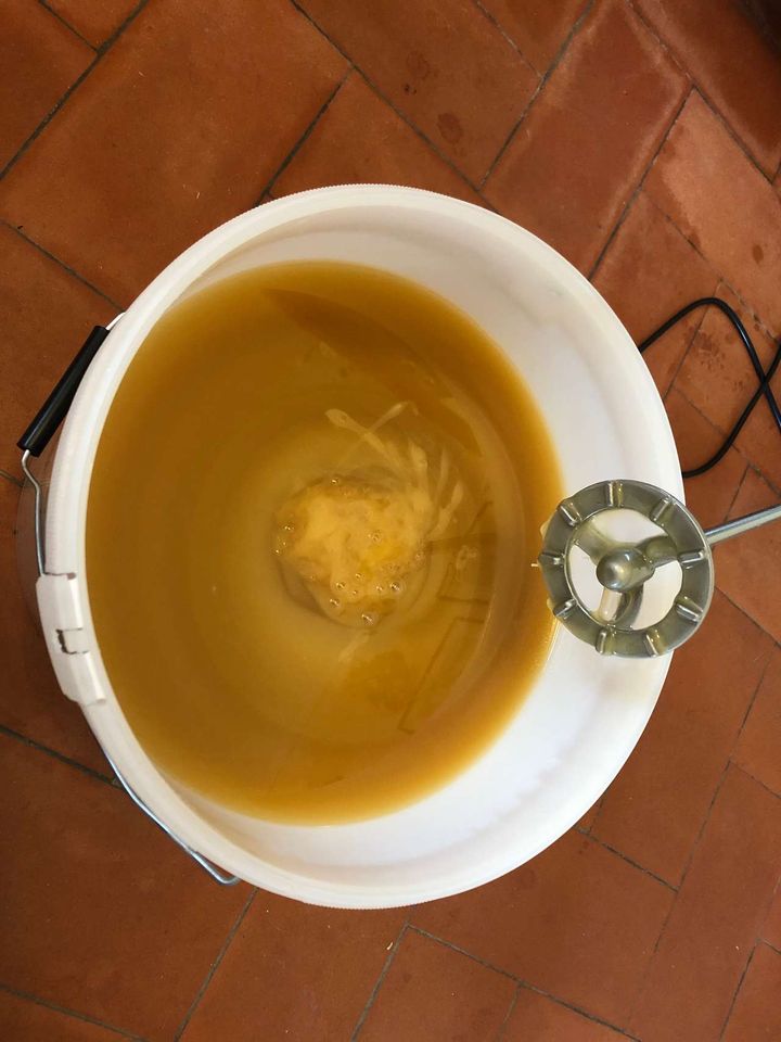 Das Cremig-Rühren ist eine Kunst. Zuerst muss der Honig frei von Kristallen sein. Dann impft man 24 kg Honig mit ca. 500 g sehr fein kristallinem Honig. Beim ersten Rühren muss der Impfhonig sehr gründlich verteilt werden. Die beste Temperatur liegt etwa bei 15 °C. Im Weiteren sollte man am Morgen und am Abend nur kurz durchrühren, bis die notwendige Steife erreicht ist. Es sieht leichter aus, als es ist. Ach, noch etwas: Man sollte auf den richtigen Wassergehalt achten.