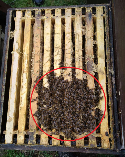 Und was machen die Bienen jetzt im Dezember, wenn's kalt wird? Sie kuscheln – und zwar in Traubenform, also kugelförmig. Wir Imker sagen dazu: Wintertraube oder Winterkugel. Aber warum bildet sich eine Bienenkugel in der eckigen Beute auf eckigen Rähmchen? Wer in Physik oder Mathematik aufgepasst hat, weiß, dass eine Kugel die kleinste Oberfläche hat. Und auf kleiner Oberfläche geht weniger Energie verloren. Das heißt: Die Bienen heizen und kuscheln in der Traube (auf bis zu 35°C), und die äußeren Bienen auf der Kugeloberfläche dienen als Isolation gegen die Umgebungstemperatur – das funktioniert so schon seit Millionen von Jahren bei den Bienen – ganz ohne Physikunterricht.