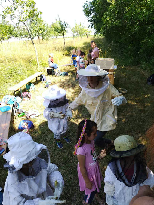 Ganz nebenbei wird das ganze Chaos wieder aufgeräumt, die Honigräume gereinigt, alte Waben mit dem Dampfwachsschmelzer eingeschmolzen. Zudem kommen noch drei Kindergartengruppen, um mal einen Imker zu besuchen.
