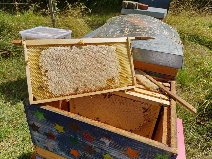 Noch ein Monat, der keine Langeweile aufkommen lässt. Die zweite Honigernte steht auf dem Programm. Die Honigeinträge bei den Völkern sind sehr unterschiedlich. Ein Volk mit nur 6 Honigrähmchen steht direkt neben einem mit 20 Honigrähmchen. Ständig das Wetter und die Trockenheit im Blick, stellt sich die Frage: Kommt noch was rein oder ist es schon vorbei?