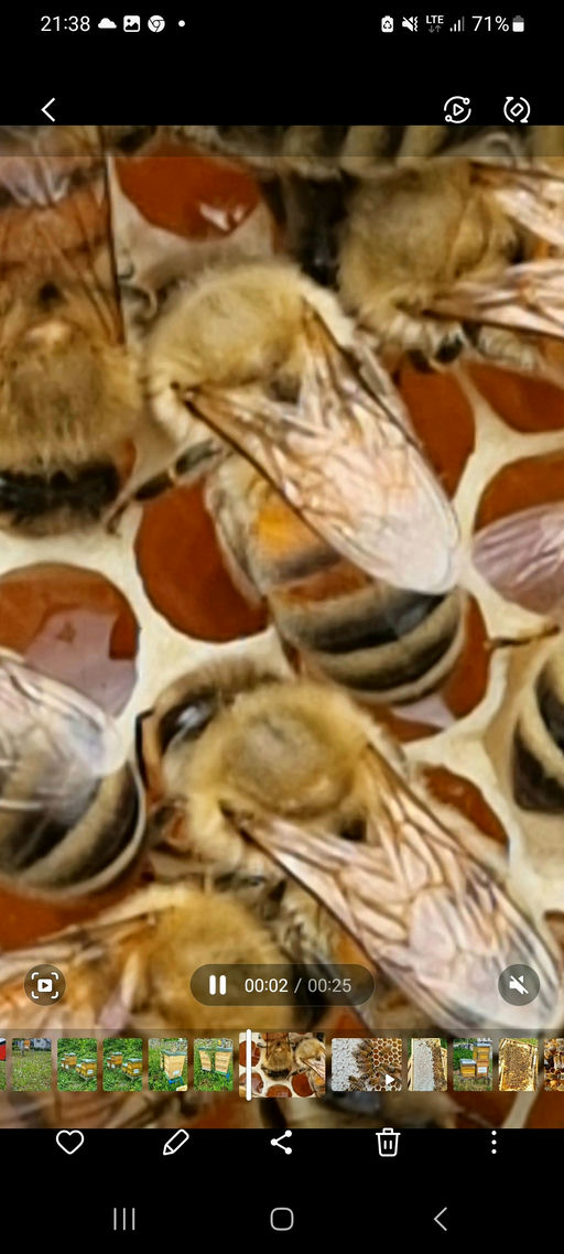 Aufgrund der verregneten letzten Wochen findet die Honigernte Anfang August statt. Die Bienen haben sich erholt, und die Beuten sind gut mit Bienen gefüllt. Sie tragen fleißig Nektar und Pollen ein. Den meisten Honig lassen wir bei den Bienen, damit sie fit für den Winter sind und genug Vorräte haben.