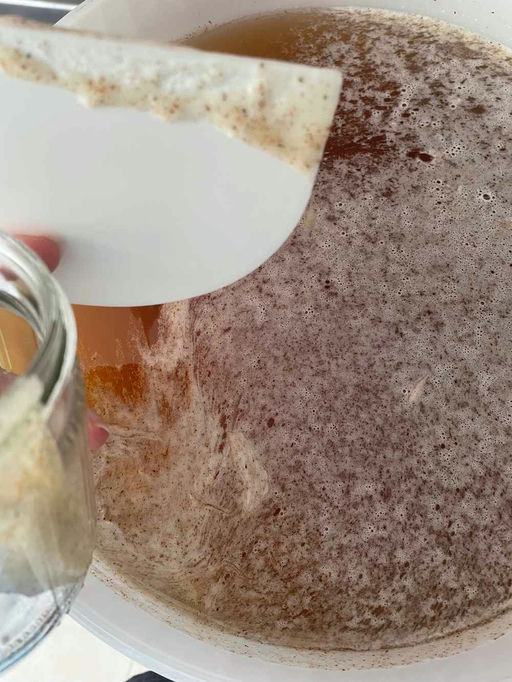 Wir haben also unsere Honigwaben im Schleuderraum, tragen saubere Kleidung und haben frisch gewaschene Hände. Dann kann es losgehen. Die Bienen haben ihre fertigen Honigzellen auf den Waben größtenteils mit dünnen, luftundurchlässigen Deckeln verschlossen. Und das aus gutem Grund, denn der Honig soll keine Feuchtigkeit ziehen, da sonst die Gefahr des Gärens bestünde. Diese Deckelchen muss der Imker als Erstes abmachen. Wir nennen es „entdeckeln“. Dazu wird mit einer Entdeckelungsgabel unter die Deckel gegangen, um diese abzuheben. Das an der Gabel klebende Wachs wird in den Auffangbehälter des Entdecklungsgeschirrs abgestreift. Sind alle Deckelchen von beiden Seiten des Rähmchens entfernt, kann das Rähmchen in die Honigschleuder. In meine Schleuder passen vier Rähmchen. Erst wenn alle Plätze belegt sind, wird die Schleuder manuell gestartet. So entsteht keine Unwucht. Durch das Drehen wird der flüssige Honig aus der Zelle an die Schleuderaußenwand befördert, wo er nach unten abfließt, um sich am Boden zu sammeln. Ist der Füllstand am Boden hoch genug, läuft der Honig durch einen Hahn aus der Schleuder. Aber natürlich nicht einfach irgendwohin. Das wäre sonst eine große Sauerei und totale Verschwendung. Unter dem Hahn steht natürlich ein lebensmittelgeeigneter Abfülleimer. Auf diesem befindet sich ein Doppelsieb. Bei einem Doppelsieb handelt es sich um ein Feinsieb (unten) und ein Grobsieb (oben), durch das der frische Honig nun durchlaufen muss. Denn in so frisch geschleudertem Honig können noch einige Wachsstückchen vom Entdeckeln sein. Alle Rähmchen müssen nach dem ersten Schleudern einmal herausgenommen und gedreht werden, denn nur die nach außen zeigende Seite wird beim Schleudern geleert. Nach dem Drehen der Rähmchen geht’s dann also wieder ans Drehen der Schleuder. Sind alle Rähmchen abgeschleudert, wird ein wenig gewartet, bis der Honig im Eimer ist. Anschließend müssen natürlich noch alle Werkzeuge und die Schleuder mit ganz viel kaltem, klarem Wasser gereinigt werden. Der volle Eimer wird mindestens einen Tag verschlossen stehen gelassen, damit alle Luftblasen und kleinste Schwebeteilchen aufsteigen können. Diese bilden einen weißlichen Schaum, der vom Imker mit einem Rakel abgezogen wird. Zuletzt wird der Honig regelmäßig gerührt, um sich bildende Kristalle gleichmäßig in der Masse zu verteilen, bevor er in Gläser gefüllt und verschenkt, verkauft oder selbst verzehrt wird. Wie du siehst, stecken neben der unfassbaren Arbeit der Bienen auch viele Handgriffe und viel Arbeit des Imkers in dem Honig, bis er zu dir kommt und du ihn genießen kannst.