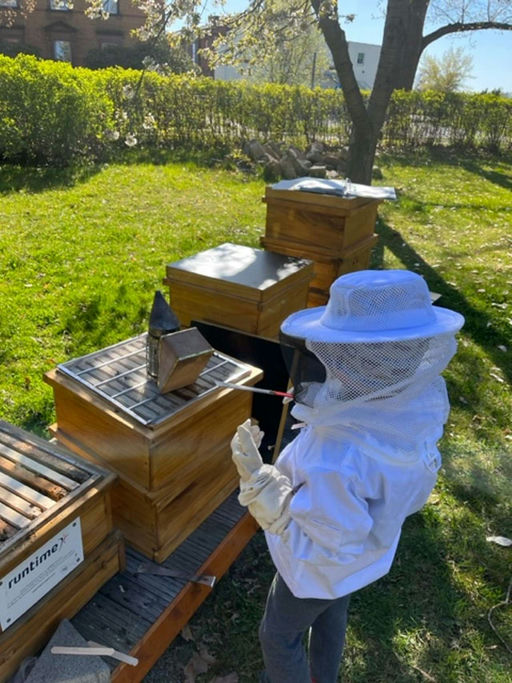In diesem Monat waren wir oft bei den Völkern, da wir mitten in der Schwarmzeit sind. Das bedeutet, dass sich die Bienen eine neue Königin heranziehen, um mit ihrer alten Königin ein neues Nest zu suchen, was wir zu verhindern versuchen. Aber auch bei uns ist ein Volk geschwärmt. Am Anfang des Monats haben wir eine Futterkranzprobe gemacht, um zu überprüfen, ob die Bienen gesund sind. Vor ein paar Tagen haben wir zudem den Honig geerntet, aber die Ernte ist relativ gering, da dieses Jahr aufgrund des Wetters schlechte Bedingungen herrschten.