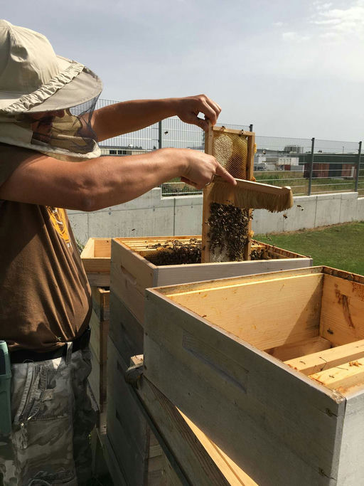Der Honig kam spät. Dieses Jahr war der Honig, was die von uns betreuten Bienen betrifft, etwas später dran. Erst Ende Juli gab es volle Waben. Insgesamt wurden 2,5 Flachzargen mit Waben voller Honig geerntet. In Kilogramm dürfte dies etwa 35-40 kg ausmachen. Das ist zwar für fünf Völker nicht allzu viel, doch auf drei dividiert, da die ersten zwei Völker kaum Honig produziert haben, gar nicht so schlecht. Man muss dazu sagen, dass eine relativ große Menge an Honig mit Brut vermischt oder nicht erntereif war. Wir schätzen, dass mindestens weitere 40 kg in dieser Form den Bienen überlassen wurden.
