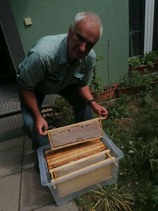 In diesem Monat wird noch fleißig geerntet. Nach den eher kühlen Monaten davor haben sich die Bienen ab Mitte Mai fleißig an die Arbeit gemacht, und das Ergebnis ist, dass dieses Volk etwa 20 kg Honig produziert hat. Der Honig schmeckt lecker. Es ist ein Blütenhonig, der aber zum größten Teil aus Akazienblüten besteht.