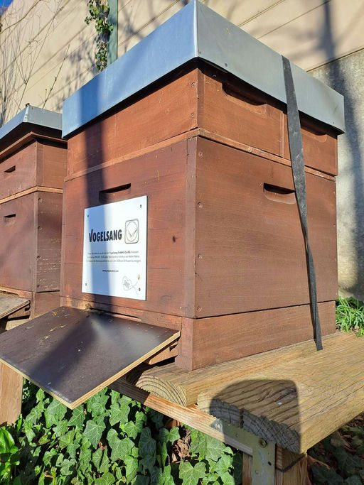 Aktuell ist es recht warm und trocken, die Bienen können also fliegen und Pollen sowie Nektar sammeln. Die Drohnenrahmen sind eingesetzt und auch schon angenommen. Es tummeln sich sogar hier und da schon Drohnen in den Völkern. Des Weiteren wurden bereits Anfang April die Honigräume aufgesetzt und die alten Futterwaben entfernt.