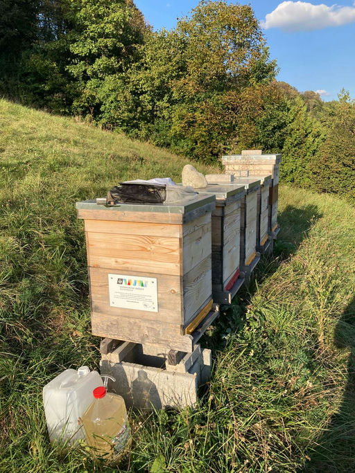 Nun war es soweit – der gute Honig wurde in die Gläser abgefüllt und steht nun den edlen Spendern, den Barmherzigen Brüdern in Graz, in Kürze zur Verfügung. Damit unsere Bienen genug Futter für die kommenden Monate haben, wurden die Vorratsschalen noch einmal fleißig mit Zuckerwasser aufgefüllt. Zusätzlich wurde ein Bienenstock mit einem Sensor ausgestattet, der die Daten im Bienenhaus aufzeichnet und von außen abgerufen werden kann. Dieser Sensor gibt Auskunft über die Temperatur im Stock und soll dem Imker zusätzliche Informationen darüber geben, ob alles in Ordnung ist. Langsam stellt sich die Natur auf Herbst und Winter um, und wir hoffen noch auf einen schönen, warmen Herbst.