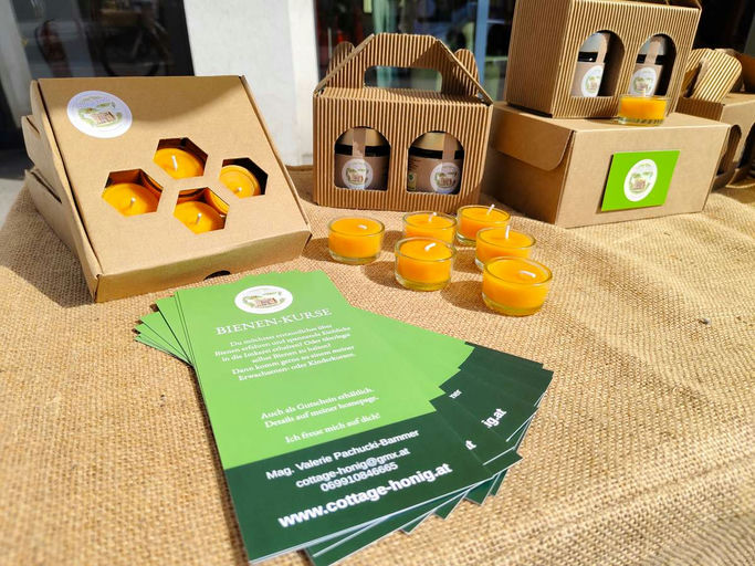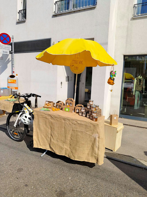 Aus meinem Lastenrad habe ich einen kleinen Verkaufsstand gebaut und so meinen Honig und auch die selbstgemachten Kerzen zur Währinger Straße transportiert.