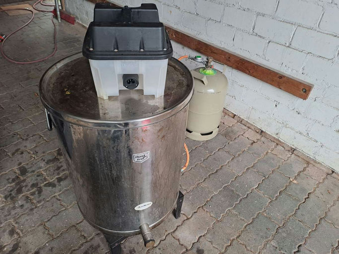 Eines meiner Völker hat es trotz diverser Versuche nicht geschafft, sich eine neue Königin zu ziehen. Letztlich habe ich einen neuen Versuch gestartet: Das Volk zog in eine neue Beute um und erhielt noch einmal frische Brut, um eine Königin zu schaffen. Leider scheiterte auch dieser Versuch. Somit habe ich das Volk abgefegt. Die Bienen betteln sich in den benachbarten Völkern ein, und die Waben wurden direkt eingeschmolzen. Kurz danach habe ich die Rähmchen auch noch in Sodalösung gereinigt.