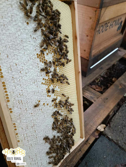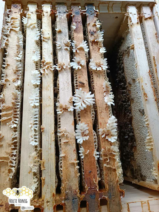 Wie bereits im Junibericht erwähnt, bereiten die SIRIUS-Bienen dem Imker etwas mehr Arbeit als die anderen Bienen am Stand. Die Spielnäpfchen sind nun vereinzelt bestiftet, wodurch der Imker dazu gezwungen wird, jede einzelne Wabe zu überprüfen. Das ist nicht weiter schlimm und kommt immer mal wieder vor. Da das Volk jedoch ausreichend Winterfutter einträgt, darf die Königin im Volk verbleiben und sich weiter um ihren Hofstaat kümmern. Im nächsten Monat geht es dann um die Winterbehandlung der SIRIUS-Bienen.