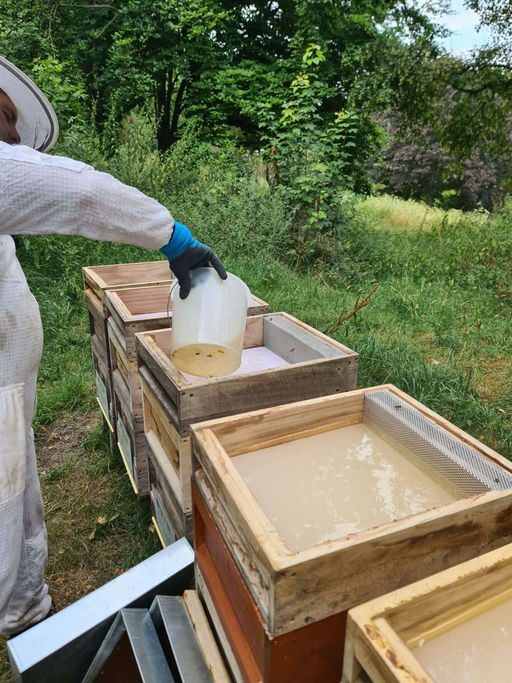 Im August wird der letzte reife Honig geerntet, danach erfolgt die Hauptbehandlung der Bienen. Bei uns wird Ameisensäure verwendet. Nach drei Tagen Behandlung erfolgt die Auffütterung der Bienen. Die Bienenvölker in Kritzendorf haben sich ausgezeichnet entwickelt und hatten auch einen guten Honigertrag.