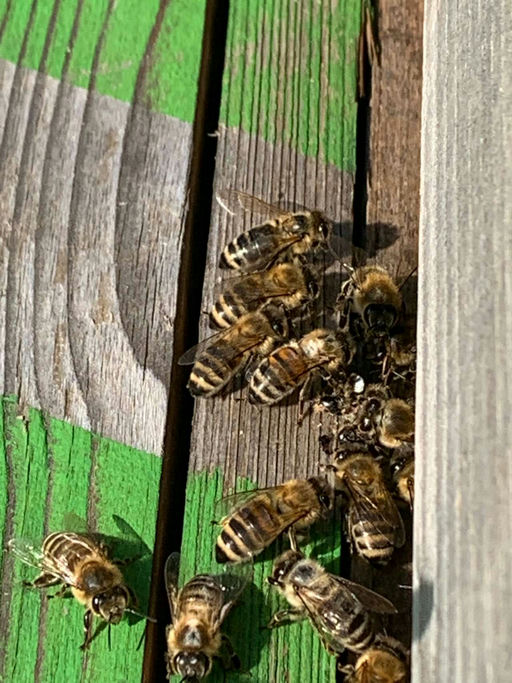 Heute Morgen habe ich beim Sirius-Volk (das über dieses Unternehmen über HektarNektar im Rahmen des Projekts 2028 gesponsert wurde) das Flugloch beobachtet. Aktuell tragen einige Bienen weiße "Kapuzen". Das kommt von dem drüsigen Springkraut, das hier im gesamten Tal wächst – ein Neophyt, der sich nicht vermehren soll. Doch die Bienen finden das Kraut klasse. Hier blüht es erst Ende August, wir sind auf über 800 m Höhe.