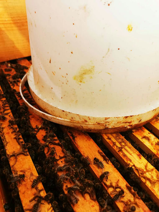 Aufgrund des Verlustes eines Bienenvolkes im letzten Jahr und dem Allgemeinzustand der Völker müssen wir dieses Jahr genauer bei der Behandlung der Bienen gegen die Varroa-Milbe sein. Wie vorgeschrieben, kommt dazu wieder Ameisensäure zum Einsatz, und das zweimal hintereinander im Abstand von 3-4 Wochen. Dazwischen steht das Füttern mit Zuckersirup an.
