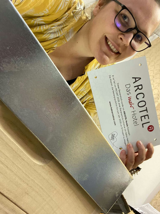 Die Plakette und die Beute sind nun angekommen. Ich habe heute in Ruhe das riesige Paket ausgepackt und meine neue Beute bewundert. In naher Zukunft dürfen dann die Arcotel-Bienen einziehen, und ich freue mich schon riesig darauf!