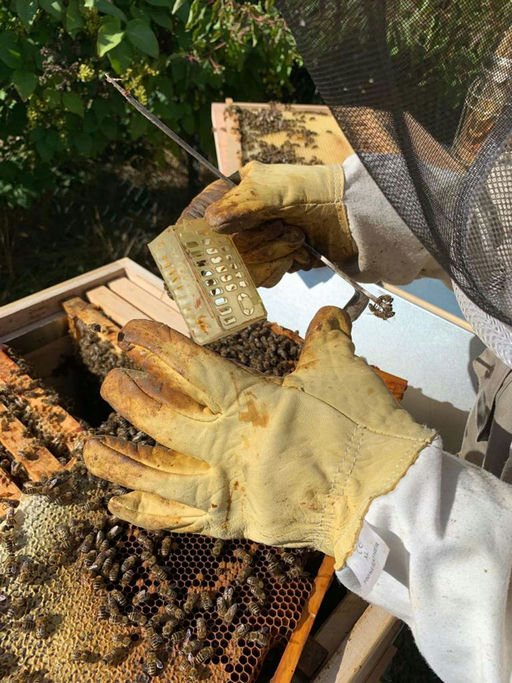 Es ist Hochsommer. Die Temperaturen erinnern zwar hin und wieder an den Herbst, doch wenn sich der Regen verzieht und die Sonne durch die Wolken bricht, zeigt das Thermometer auch 30 Grad an. Trotzdem stecken die Bienen in der Wintervorbereitung. Es gibt kaum noch blühende Futterpflanzen. Der Wintervorrat sollte so langsam angelegt sein. Höchste Zeit, gegen die Bienengegner, die Varroamilbe, vorzugehen. In den letzten Jahren habe ich gute Erfahrungen mit der Oxalsäurebehandlung auch im Sommer gemacht. Da Oxalsäure milder ist, dringt sie nicht in die verdeckelte Brut ein. Daher ist es wichtig, eine künstliche Brutfreiheit herbeizuführen. Das schaffe ich, indem ich die Königin käfige. Mit viel Fingerspitzengefühl wird sie in einen Plastikkäfig gesperrt und dann wieder im Rähmchen eingehängt. Die Bienen füttern ihre Königin dann durch die kleinen Löcher. In drei Wochen sollten die Völker brutfrei sein, und dann wird behandelt. Dieses Jahr habe ich mir dafür ein Gerät zugelegt. Stay tuned...