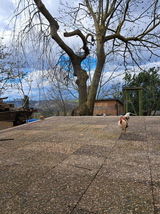 Damit die schönen neuen Holzbeuten trockenen Fußes stehen und lange erhalten bleiben, haben wir den Untergrund noch befestigt. Deshalb stehen unsere 'alten Völker' gerade am Pizzaofen ;) und warten dort freudig auf die Projektbienen – und endlich auf Flugwetter!