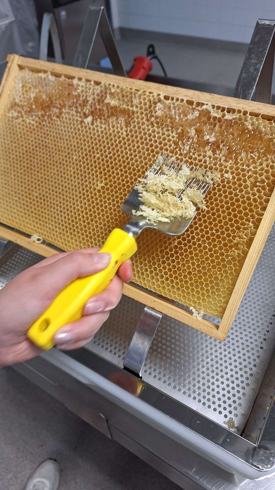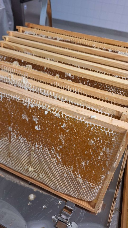 Der Juni verlief durchwachsen. Zwar waren die Völker im Großen und Ganzen vital und stark, doch das unbeständige Wetter hat die Trachtnutzung deutlich erschwert. Der Raps fiel ins Wasser und auch sonst fehlten durchgehende Flugtage mit Ertrag. Die neuen Honigräume wurden zwar gut angenommen, doch bei der Ernte Mitte Juni zeigte sich: Die Erträge blieben hinter den Erwartungen zurück. Manche Völker hatten nur wenig verdeckelten Honig im Honigraum.