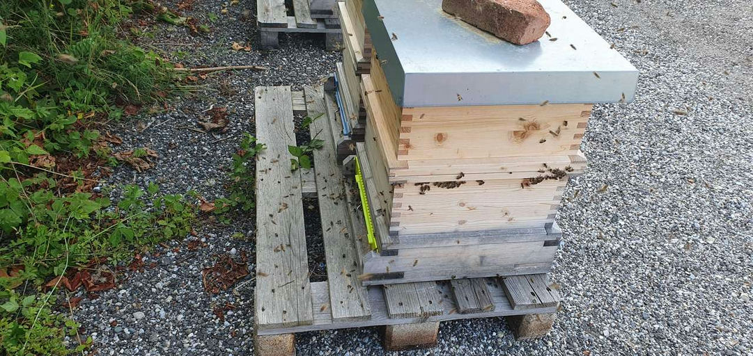 Das Wetter war im Mai leider zu feucht und zu kalt, deshalb sind die Honigräume noch leer. Der Juni war besser, und wir hoffen auf einen warmen und trockenen Juli. Inzwischen sind wieder zwei Ableger (kleine Völker mit jeweils fünf Waben) zu uns gestoßen und haben sich gut eingeflogen.