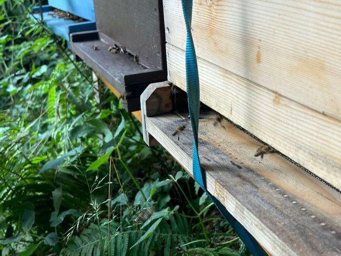 Leider haben die Bienen den Honigraum nicht angenommen. Einige wenige krabbeln darin herum, jedoch wird nichts eingelagert. Das Volk ist an sich stark und wirkt gesund. Dennoch steigt die Varroabelastung, deshalb werde ich nächste Woche mit der ersten Bekämpfung beginnen.