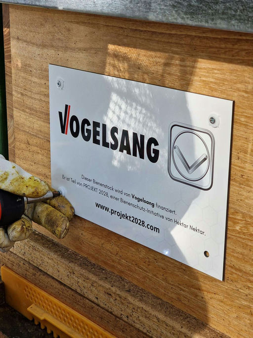 Das neue, sehr schön gelungene Schild ist angekommen und angebracht. Nun noch schnell eine Futterkontrolle und eine kurze Varroa-Kontrolle, um zu sehen, ob bei unserem Volk alles in Ordnung ist. Bisher sieht alles prima aus, und unser Volk geht langsam, aber sicher in den Winter. Die Volkstärke ist sehr gut, und auch der Futtervorrat ist gut angelegt.