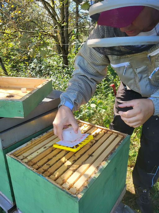 Das arbeitsreiche Jahr geht dem Ende zu. Eine Varroabehandlung bei auffälligen Völkern mittels Ameisensäure wird durchgeführt, und die Futterreserven werden geprüft. Es wird kontrolliert, ob Brut und Bienen vorhanden sind, und schwache Völker werden für Zusammenlegungen markiert. Der goldene Herbst hat noch einiges an Nektar zu bieten, und die Bienen tragen weiterhin Nektar ein.
