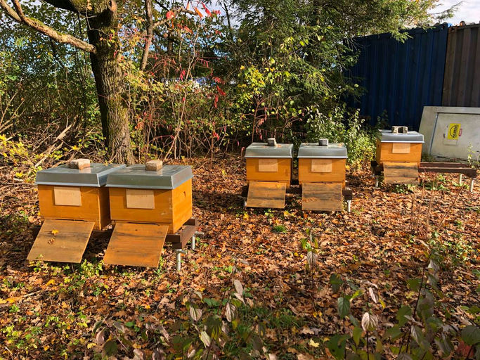 Was die Bienen an Futter nicht aus der Umgebung sammeln können, muss mit Apiinvert aufgefüttert werden. Unsere Bienen überwintern auf 8 Dadant-Waben mit einem Gesamtgewicht der kompletten Beute von etwa 38 kg. Davon sind bis zu 16 kg Futter. Natürlich muss auch im Winter das Mäusegitter eingesetzt werden. Sonst finden die kleinen Mäuse ein warmes und futterreiches Zuhause, was den Bienen ganz und gar nicht gefällt.