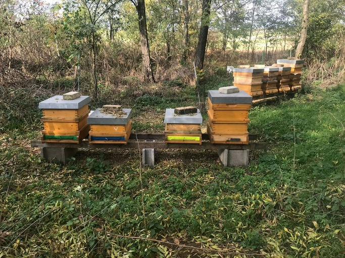 Im Oktober sind die Temperaturen an manchen Tagen noch hoch genug, um bei den Bienen vor dem Winter noch ein letztes Mal nachzusehen, ob sie alles haben, was es braucht, um die Wintermonate gut zu verbringen. Darum kontrolliere ich, ob alle Völker eine Königin haben und ob sie von der Menge an Arbeiterbienen stark genug sind, um über den Winter zu kommen. Außerdem prüfe ich, ob die Maßnahmen gegen den Befall der Varroamilbe in den letzten Monaten erfolgreich waren und die Schädlinge nicht mehr oder nur in geringer Anzahl vorhanden sind und ob genügend Futtervorräte vorhanden sind. Weisellose Völker, das sind jene, die keine Königin mehr haben, bekommen eine Königin zugesetzt. Bei schwachen Völkern verringere ich den Brutraum mit einem Trennschied, um den Raum, den die Bienen wärmen müssen, zu reduzieren. Falls der Varroabefall noch zu hoch ist, führe ich noch eine Bedampfung mit Oxalsäure durch. Sollten die Futtervorräte noch nicht ganz befüllt sein, füttere ich die Völker noch mit speziellem Bio-Bienenfutter. Erfreulicherweise ergab die Durchsicht der Völker, dass alles in Ordnung ist. Bei drei Völkern habe ich den Brutraum auf eine Zarge reduziert. Somit sind die E&Y-Bienen startklar für den Winter!