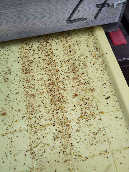Die toten Milben auf dem Boden sind beachtlich – ich bin sehr froh, dass diese Parasiten nicht mehr im Bienenvolk sind!