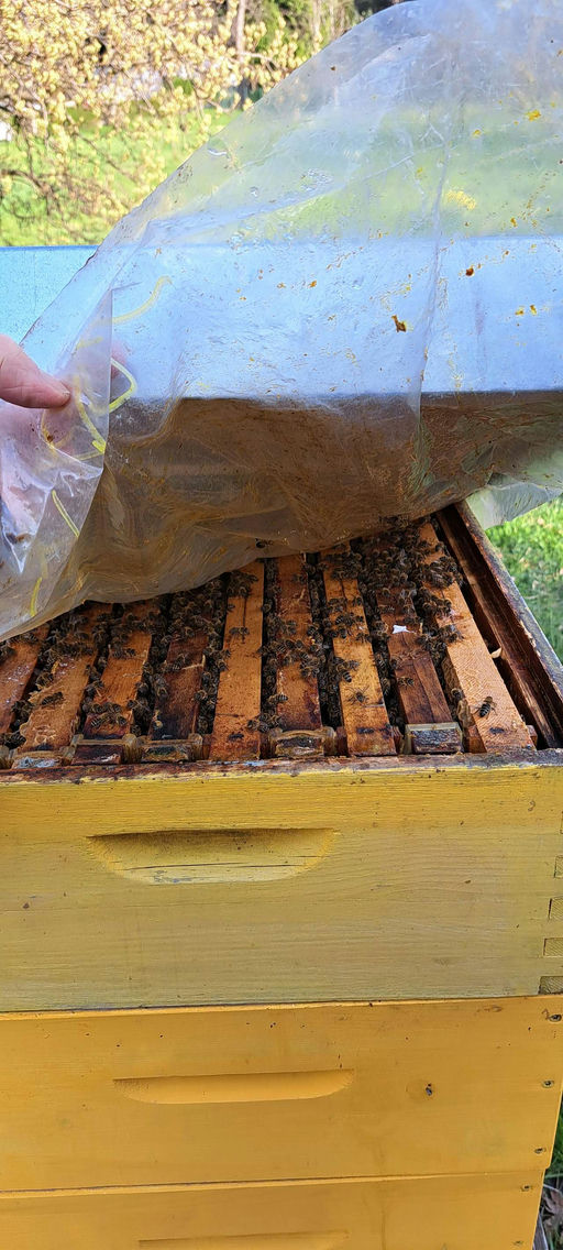 Mir ist immer wichtig, dass es meinen Mädels gut geht, und ich schaue mindestens einmal pro Woche bei ihnen vorbei. Ich habe auch die alten Waben, die nicht mehr hygienisch vertretbar waren, aussortiert und zur Verarbeitung geschickt, damit sie nicht von den Motten gefressen werden.