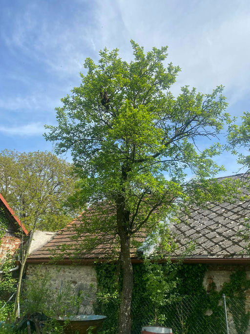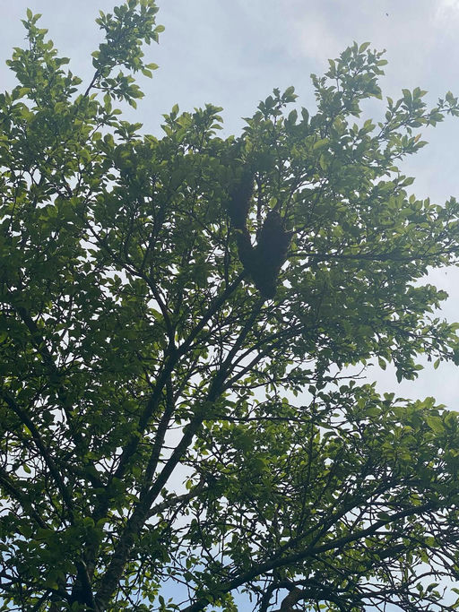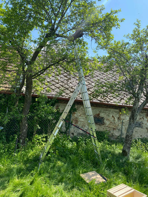 Bei der letzten Durchsicht habe ich aufgrund der Schwarmstimmung im Volk einen Ableger erstellt und die restlichen Weiselzellen gebrochen. Anscheinend habe ich trotz sorgfältiger Arbeit eine Weiselzelle übersehen, und gestern und vorgestern hatte ich einen Schwarm. Die Schwärme hingen beide an einem Zwetschgenbaum, ca. 15 m von meinem Bienenstand entfernt. Mit Hilfe meines Vaters konnte ich beide Schwärme einfangen und ihnen ein neues Zuhause anbieten. So wie es jetzt aussieht, haben beide Schwärme die neue Behausung angenommen und werden sich hoffentlich gut entwickeln. Hoffentlich bleibt dies so.