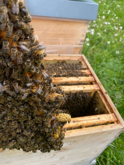 Im Mai ist es besonders wichtig, die Bienenvölker regelmäßig zu kontrollieren, da die Schwarmzeit in vollem Gange ist. Schwärme entstehen, wenn ein Teil des Volkes mit der alten Königin auszieht, um eine neue Kolonie zu gründen. Dies ist ein natürlicher Vermehrungsprozess der Bienen. Um Schwärme zu vermeiden, ist es wichtig, regelmäßig Weiselzellen zu entfernen und für ausreichend Platz im Bienenstock zu sorgen.