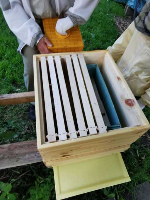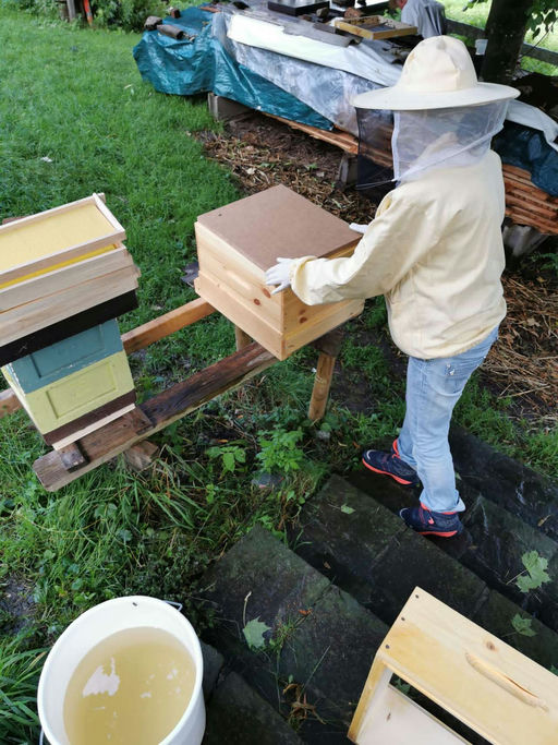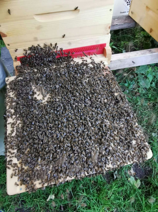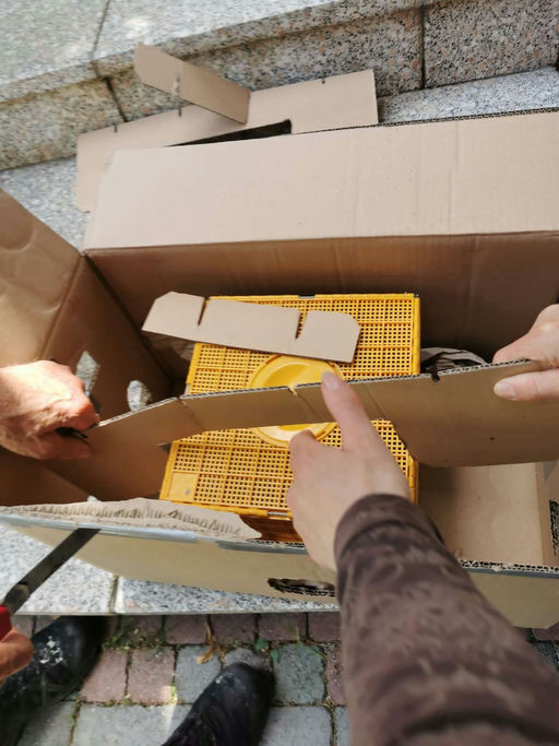 Am Freitag vor einer Woche traf endlich das schon lange erwartete Bienenvolk mit dem GO! Express & Logistics Bus bei mir ein. Ich habe die Box sofort für einige Stunden in den kühlen Keller gestellt, damit sich die aufgeregten Bienen beruhigen können. Am späten Nachmittag haben wir dann das Volk in die neue Behausung übergeben. Die Bienenkönigin musste vorerst noch gerettet werden, da sie von den noch aggressiven Bienen sofort geknäult wurde. Wir mussten die Königin nochmals in den Käfig geben und haben dann das Bienenvolk mit Futter versorgt. Nach fünf Tagen hat sich das neue Volk doch entschieden, die Königin anzunehmen. Da das Bienenvolk sehr groß ist, wurde nun die zweite Zarge aufgesetzt und mit fünf neuen Rähmchen und einer hellbraunen ausgebauten Wabe befüllt. Diese Wabe hat eine höhere Wärmedämmung als eine neue Mittelwand. Dadurch beginnt die Königin sofort mit der Eiablage. Das hat bestens funktioniert. Das Volk ist sehr fleißig, hat schon fast alle Mittelwände ausgebaut, trägt schon Pollen ein und die Königin hat in der hellbraunen Wabe bereits ein riesiges Brutnest angelegt. Wir haben für die Bienen einen guten Platz gefunden. Es sind ja Sonnenkinder und bekommen die notwendige Sonnenenergie mit etwas Schatten in der intensiven Wärmezeit. Ich freue mich schon auf die weitere Entwicklung, auch meine Imkerfamilie schließt sich dem an. Bis zum nächsten Mal. Liebe Grüße Isabel