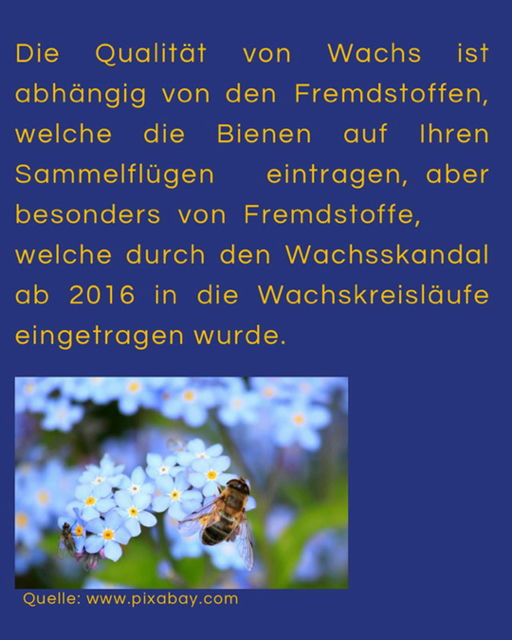 Wachs ist nicht gleich Wachs, sondern Lebensraum. Daher ist es wichtig, auf die Qualität zu achten. Der Wachsskandal vor einigen Jahren hat dazu geführt, dass technisches Wachs über den Imkereihandel in Umlauf gekommen ist. Da das Wachs auch als Speicher für den Honig dient, ist dieses alles andere als lecker ;-). Daher beachte die Hinweise in meinen Fotos und schaue dir auch meinen Instagram-Kanal an: #doehmberghonig.
