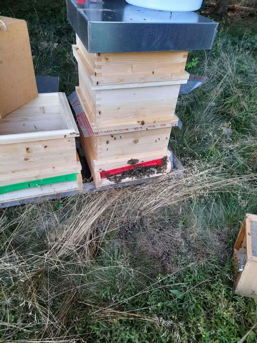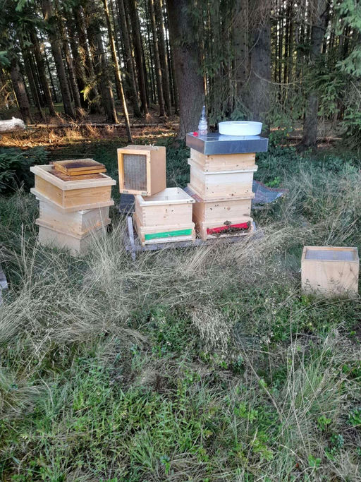 Bereits im Frühjahr haben wir den Bienenstand an diesem Standort neu aufgebaut, nachdem die vorherigen Völker den harten Winter leider nicht überlebt hatten. Aufgrund der Höhenlage mussten wir Geduld mitbringen: Die Temperaturen steigen hier langsamer, der Frühling kommt später, und die Winter dauern deutlich länger. Für unsere Bienen bedeutete das, dass ein Einzug erst jetzt, mitten im Sommer, möglich war – wenn genug Nahrung vorhanden ist und stabile Bedingungen herrschen.