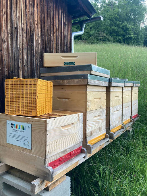 Ein neuer Bienenschwarm ist an unserem Standort eingetroffen – wer findet die Königin? Der Bienenschwarm bekommt ein neues Zuhause auf dem Areal der Barmherzigen Brüder in Eggenberg bei der Bergstraße. Der Temperatursturz im April/Mai ist überwunden, und die ersten Honigtropfen wurden eingetragen. Die Bienen erfreuen sich am Nektar. Seit kurzem dient auch ein Sensor im Bienenstock als zusätzliche Hilfe, der die Daten aufzeichnet und übermittelt, um ein noch besseres Bild davon zu liefern, wie es dem Bienenvolk geht.