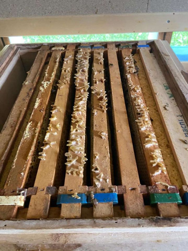 Da es in diesem Monat an einigen Tagen relativ warm war, habe ich nochmals die Futtervorräte überprüft, um sicherzustellen, dass diese auch ausreichen. Obwohl genug im Volk vorhanden war, habe ich dennoch bereits fertige Futterwaben eingehängt, nur um sicherzugehen. Das Volk wurde dann mit ein paar Decken eingepackt und mein Bienenhaus winterfest gemacht.
