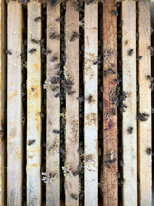 Mit Oktober sind die Bienenvölker bereit für den Winter. Bei dem einen oder anderen Stock musste noch etwas gefüttert oder eine Varroabehandlung durchgeführt werden. Wichtig sind jetzt: eine vitale Königin, gesunde und langlebige Bienen sowie ausreichend Futterreserven, um den Winter zu überdauern. Auch die Mäusegitter sind bereits an allen Ständen angebracht, damit keine Eindringlinge in den Bienenstock gelangen und die Winterruhe stören. Mit Blick auf die kommende Saison habe ich alle Völker möglichst gleichmäßig eingewintert. Sie sitzen über die Wintermonate auf 7-8 Rähmchen, um ausreichend Platz für Futter- und Pollenreserven zu haben. An wärmeren Tagen ist die Traube etwas lockerer, und man kann einzelne Bienen beim Sammeln von Wasser oder Pollen beobachten. Wenn es kühler wird, ziehen sich die Bienen jedoch zur Wintertraube zusammen.