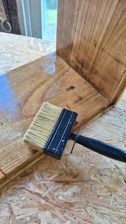 Parallel dazu wurden die Arbeiten an den Beuten durch den Imker fortgesetzt. Einige Beutenteile wurden gereinigt und geölt, um sie optimal auf die kalte Jahreszeit vorzubereiten. Auch kleinere Reparaturen und Kontrollen an den Fluglöchern wurden durchgeführt, um das Eindringen von Mäusen zu verhindern.