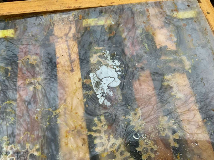 Heute, bei Frost (!), habe ich die Oxalsäurebehandlung gegen Varroa durchgeführt. Bei der Mischung muss auf Genauigkeit und Schutz (Maske, Handschuhe) geachtet werden! Die beiden Völker sahen auf den ersten Blick sehr schwach aus (zwei Wabenreihen), allerdings kamen bei der Behandlung viele Bienen nach oben – anscheinend haben sie sich in den unteren Teil zurückgezogen. Hoffentlich reicht das Futter über den Winter.
