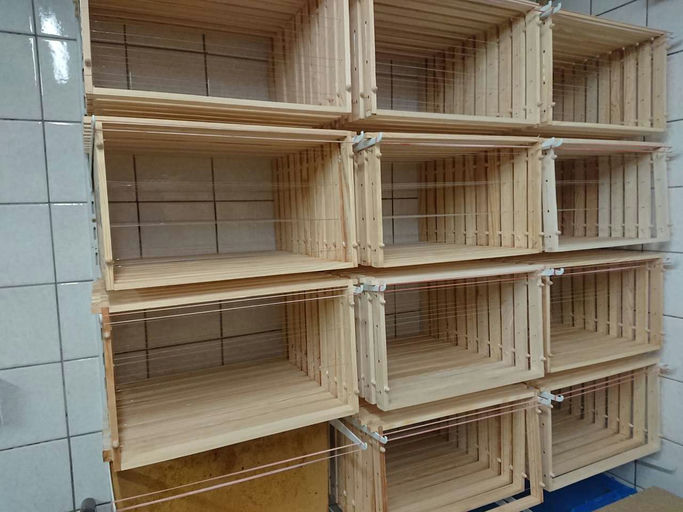 Der zum Teil eisige Januar ist der perfekte Monat, um die Vorbereitungen für die kommende Saison zu treffen. Bei diesem Wetter ist man gern in der Werkstatt und erledigt die noch anstehenden Arbeiten. Neue Rähmchen stehen auf dem Programm. Genagelt, geleimt und gedrahtet wird im Akkord. Noch die neuen Mittelwände einlöten, und das nächste Kapitel ist abgeschlossen.