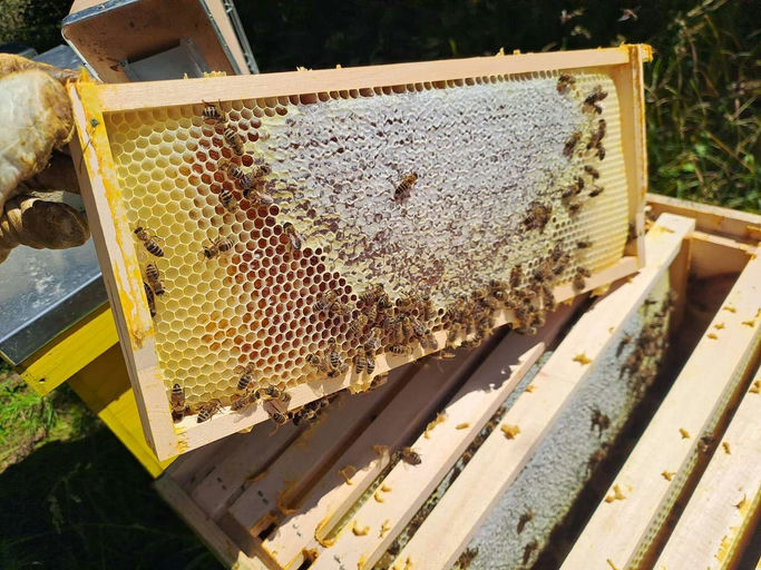 Leider sah es im Juni wetterbedingt eher schlecht aus. Dennoch konnten sich die Völker ein wenig mit Futter eindecken. Wir dürfen also weiterhin auf ein wenig Honig Ende Juli hoffen. Die Bienen sind fleißig und nutzen hoffentlich noch die Waldtracht.