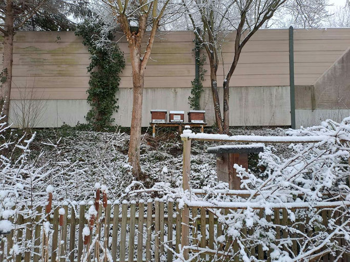 Nachdem zur Jahreswende Flugwetter war und im Februar bereits die ersten Blicke in die Völker möglich waren, gibt es im März in diesem Jahr Schnee. Für den Imker heißt es nun wieder hoffen, dass die Futterreserven ausreichen und es zu keinem Futterabriss kommt. Wenn das Brutnest bzw. die Bienentraube zu weit vom Futter entfernt ist, können auch kleine Strecken von den Bienen nicht überwunden werden, sie verklammen und sterben. Sobald das Wetter besser wird, ist hoffentlich bald auch wieder ein Blick in die Völker möglich.