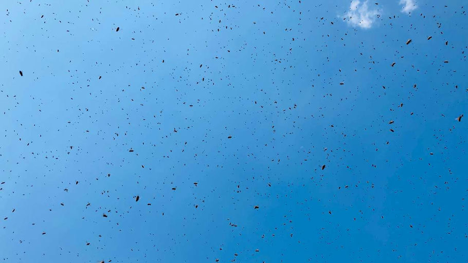 Ja, der Mai ist ein sehr arbeitsintensiver Monat für Imker. Neben der wöchentlichen Schwarmkontrolle müssen die Honigräume aufgesetzt werden, damit die Bienen genügend Raum haben und die Schwarmlust nicht noch zusätzlich angeheizt wird. Nach dem sehr verregneten und kühlen April waren auch bei meinen Völkern einige sehr schnell in Schwarmstimmung. Dann bleibt nur zu hoffen, dass man in der Nähe ist und seinen eigenen Schwarm eventuell wieder "einschlagen" kann, damit das Volk nicht ganz verloren ist – auch wenn beim Muttervolk der Honigertrag erst einmal vorbei ist. Trotzdem ist es immer wieder ein Naturschauspiel, wenn der Schwarm auszieht und ein gewaltiges Brausen und Sammeln in der Luft stattfindet und der Schwarm wie auf Kommando zur nächsten Destination weiterfliegt.
