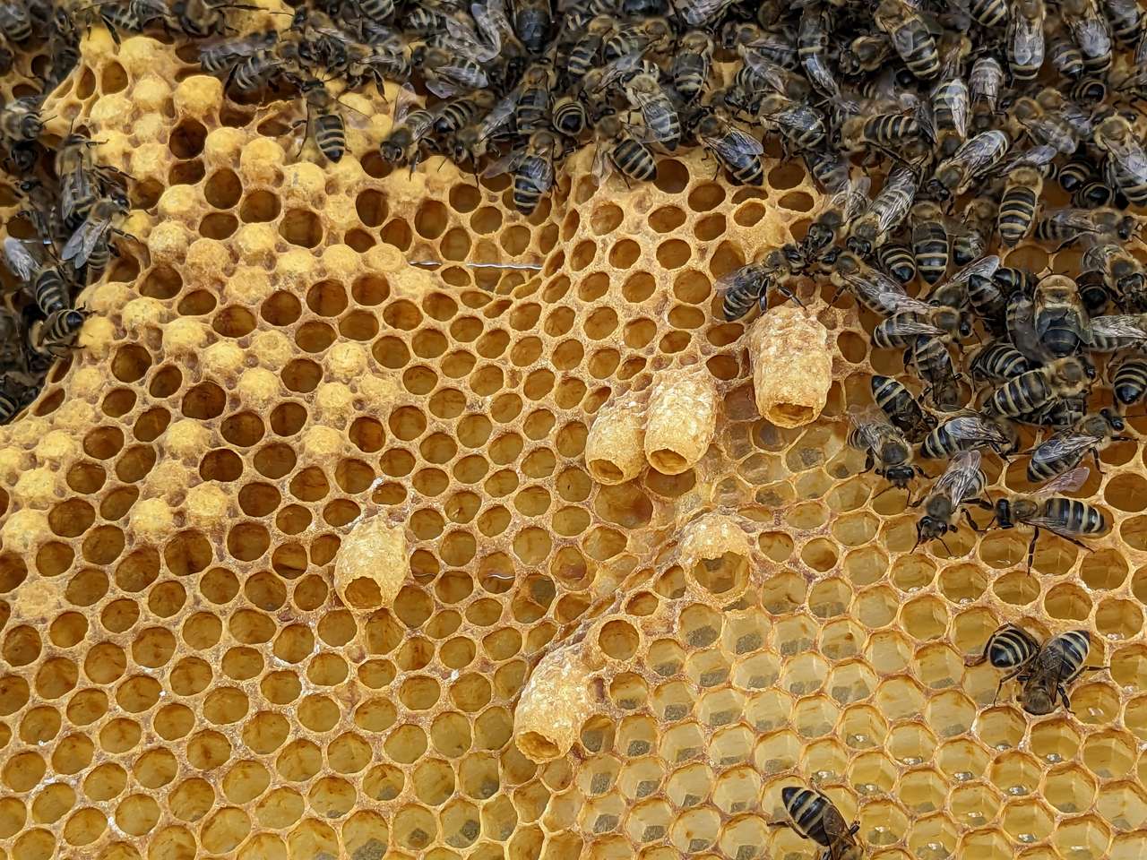 4. Ein Volk gefunden, das bereits große Weiselzellen hat, die möglicherweise bereits Brut enthalten.